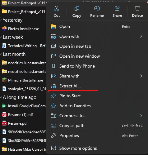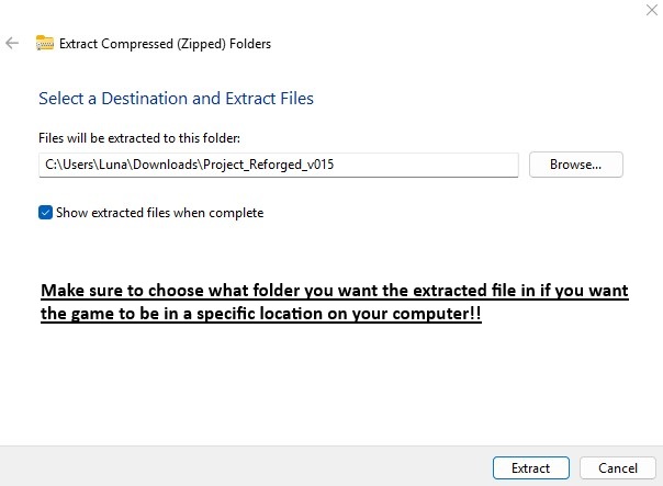 2. Unzip the downloaded file from your download folder (or whatever folder you chose to download the game)